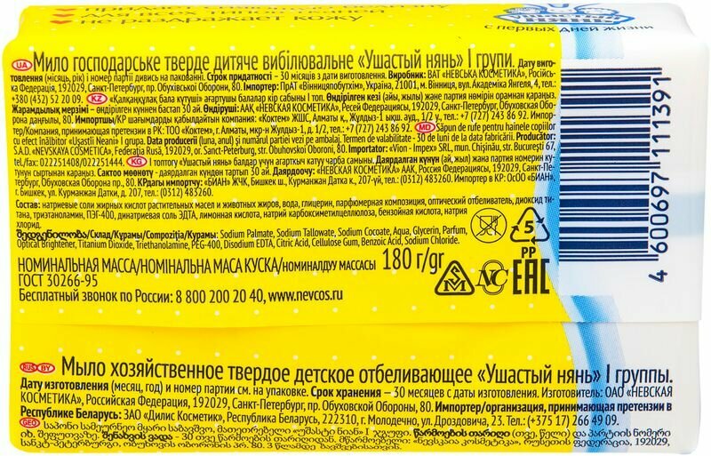 Ушастый нянь Мыло хозяйственное для детского белья отбеливающее, 180 г