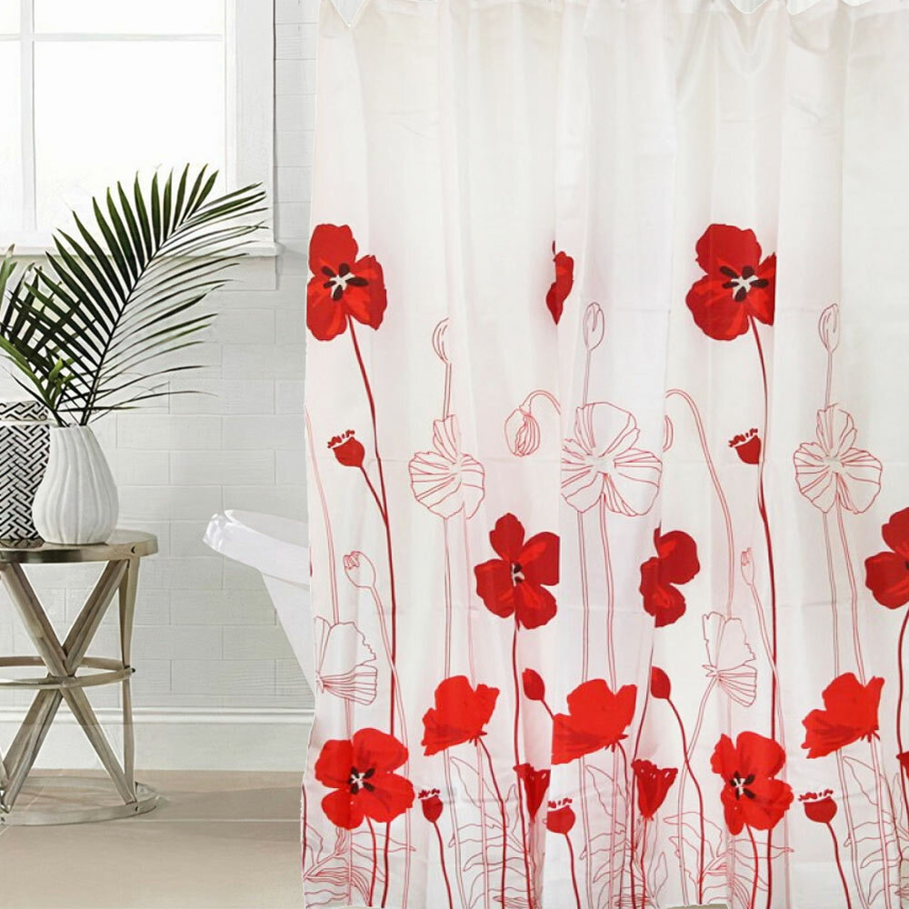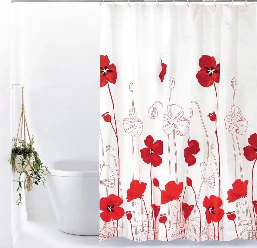 Занавеска для ванной SC-PE-25 , полиэстер, р-р 180*180 см (12/1) белая с красными маками .
