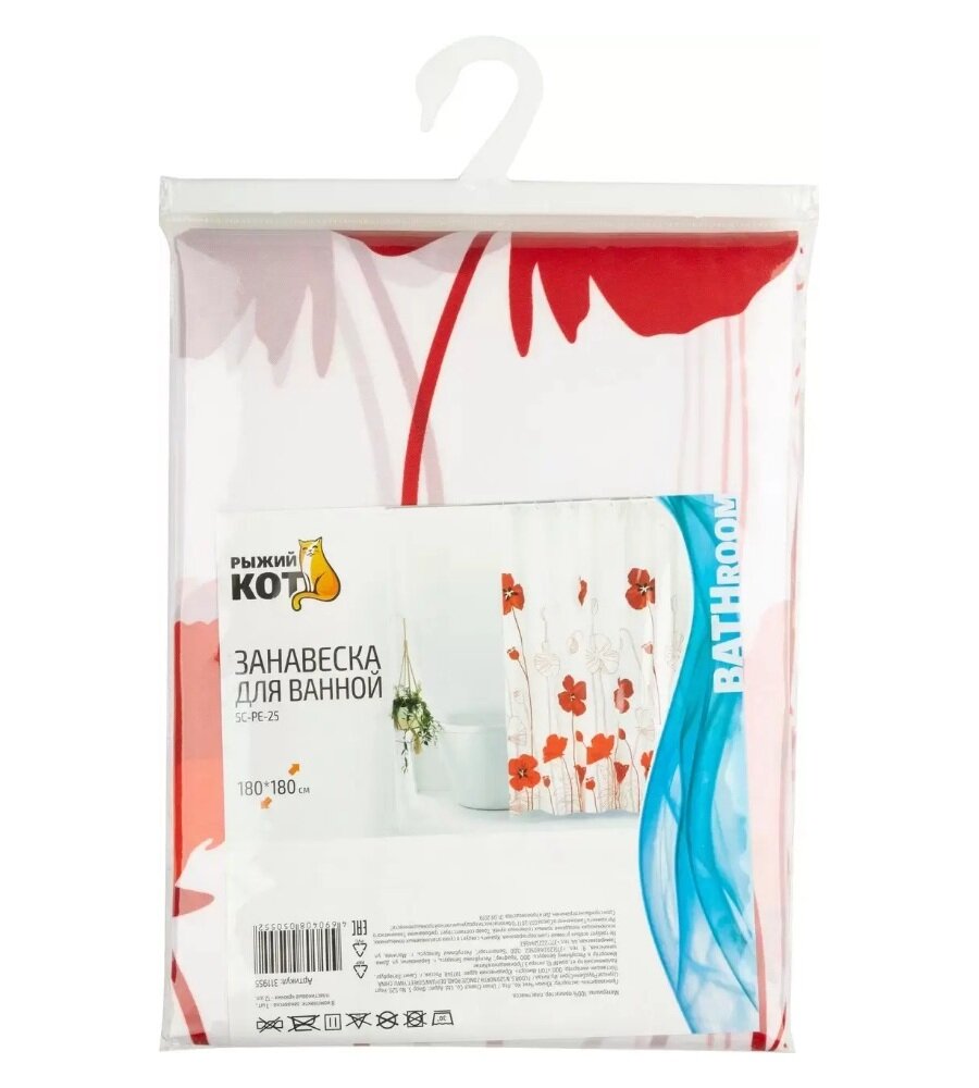 Штора для ванной Рыжий кот SC-PE-25, 180 x 180 см, полиэстер