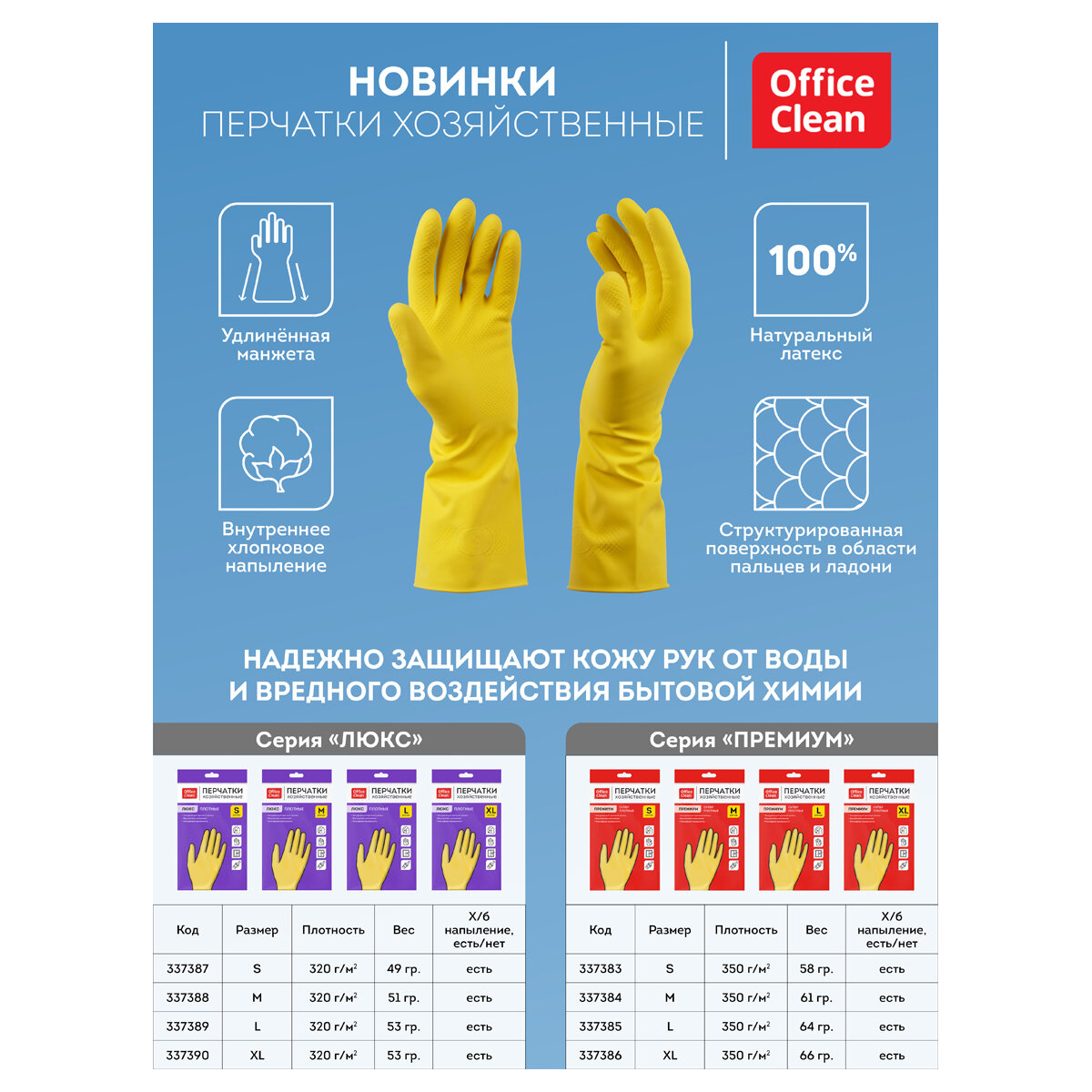 СохранитьПерчатки резиновые хозяйственные OfficeClean люкс, многоразовые, хлопчатобумажное напыление, плотные, р.S, желтые, пакет с европодвесом, 3 штуки интересное: