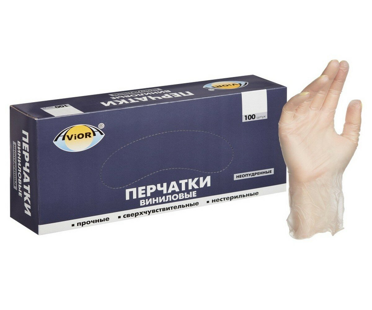 Aviora Перчатки виниловые, неопудренные, одноразовые, размер L, 100 шт. в упаковке