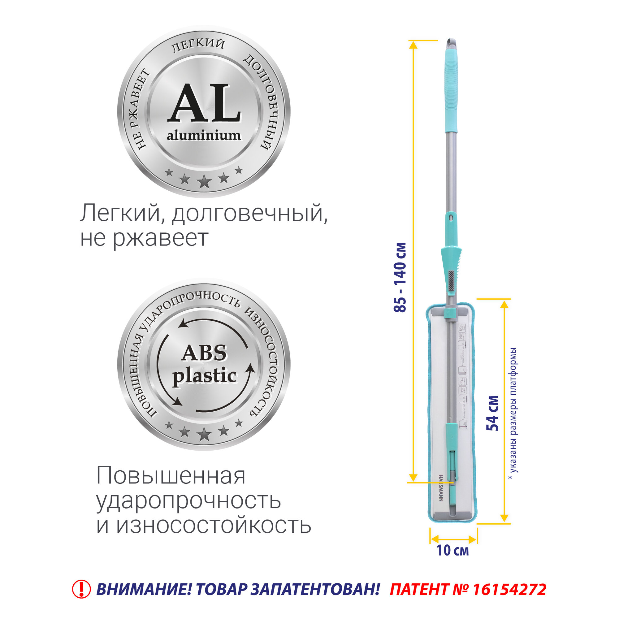 Ручку перемещается по длине швабры можно промыть любое место, ручка прочная, микрофибра вытирает насухо.