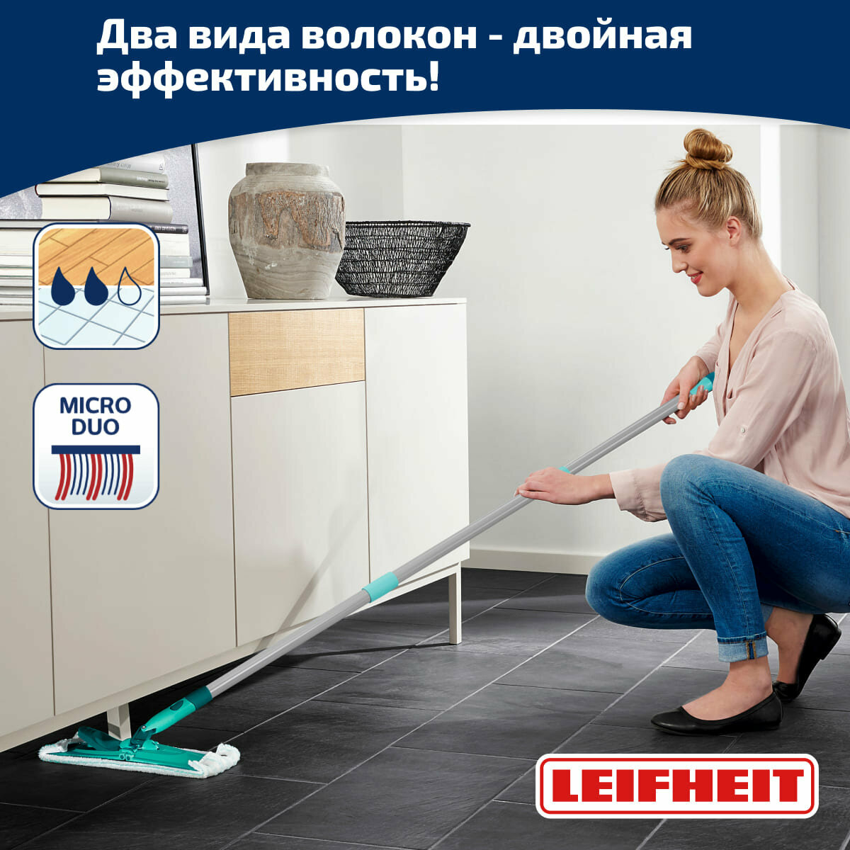 Насадка сменная для швабры Leifheit CleanTwist XL micro duo интересное: