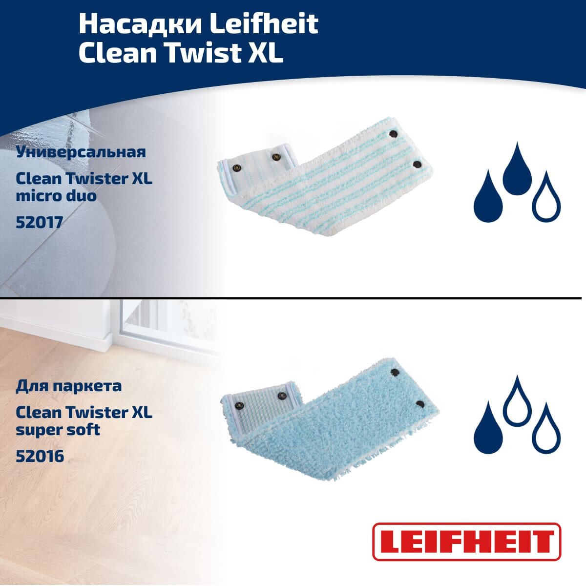 Ниже Вы можете прочитать отзывы на Насадка сменная для швабры Leifheit CleanTwist XL micro duo, ознакомится с подробными характеристиками, посмотреть интересные обзоры и фотографии на Насадка сменная для швабры Leifheit CleanTwist XL micro duo.