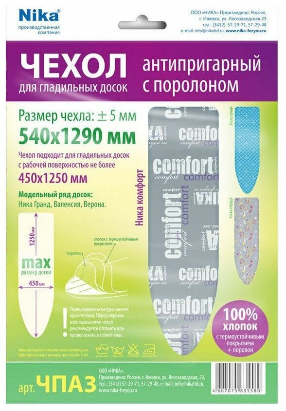 Чехол для гладильной доски Nika с поролоном ЧП3 129х54 см в ассортименте