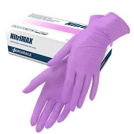 Перчатки одноразовые медицинские Нитриловые Archdale NitriMAX,Сиреневые,L, 100 штук/50 пар, Неопудренные, Гипоаллергенные