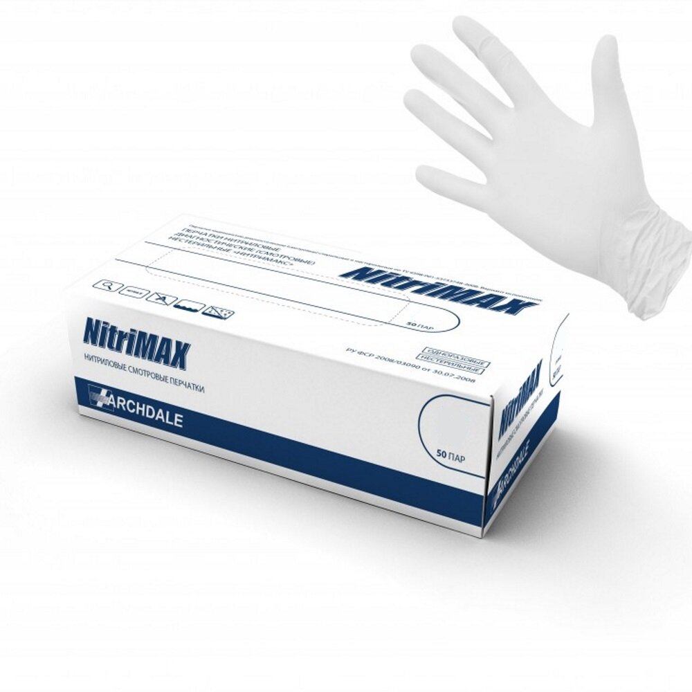 Перчатки Archdale NitriMAX, 50 пар, размер: XL, цвет: белый, 1 уп.