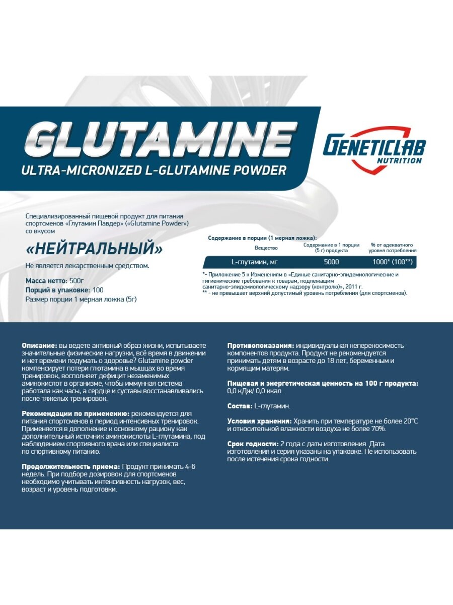 СохранитьGeneticLab Nutrition L-Glutamine 500 г нейтральный интересное: