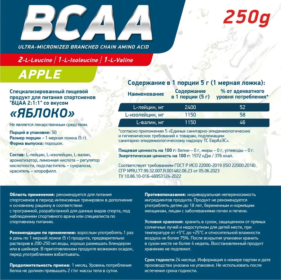 Аминокислоты BCAA 2:1:1 250 g Яблоко