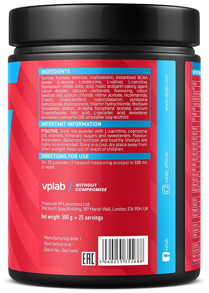 VPLab Nutrition Изотонический напиток с витаминами и минералами FitActive, вкус «Арбуз», 500 г, VPLab