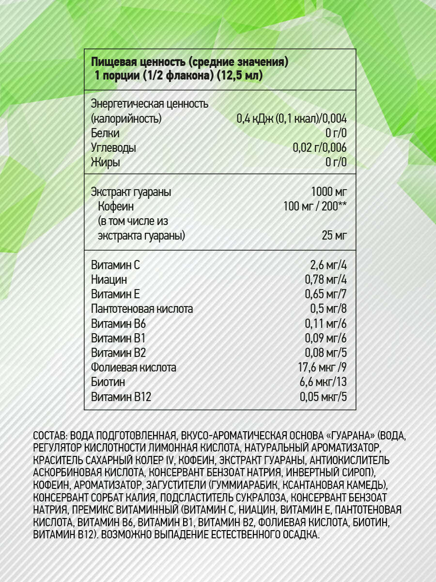 Энергетик Guarana 2000 25 мл 20 шт кофе