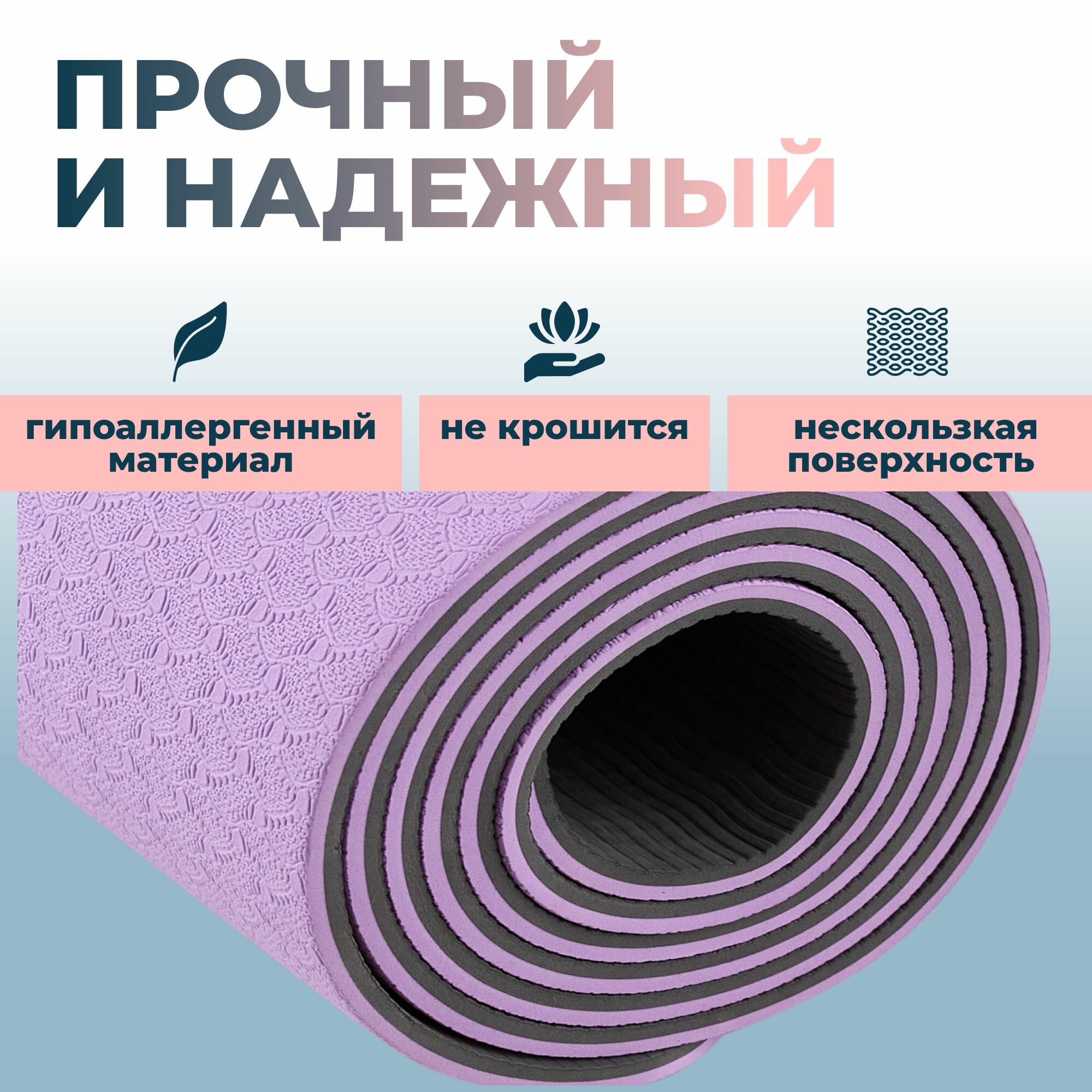 Коврик для йоги и фитнеса Starfit Fm-201, Tpe, 183x61x0,6 см, фиолетовый пастель/серый