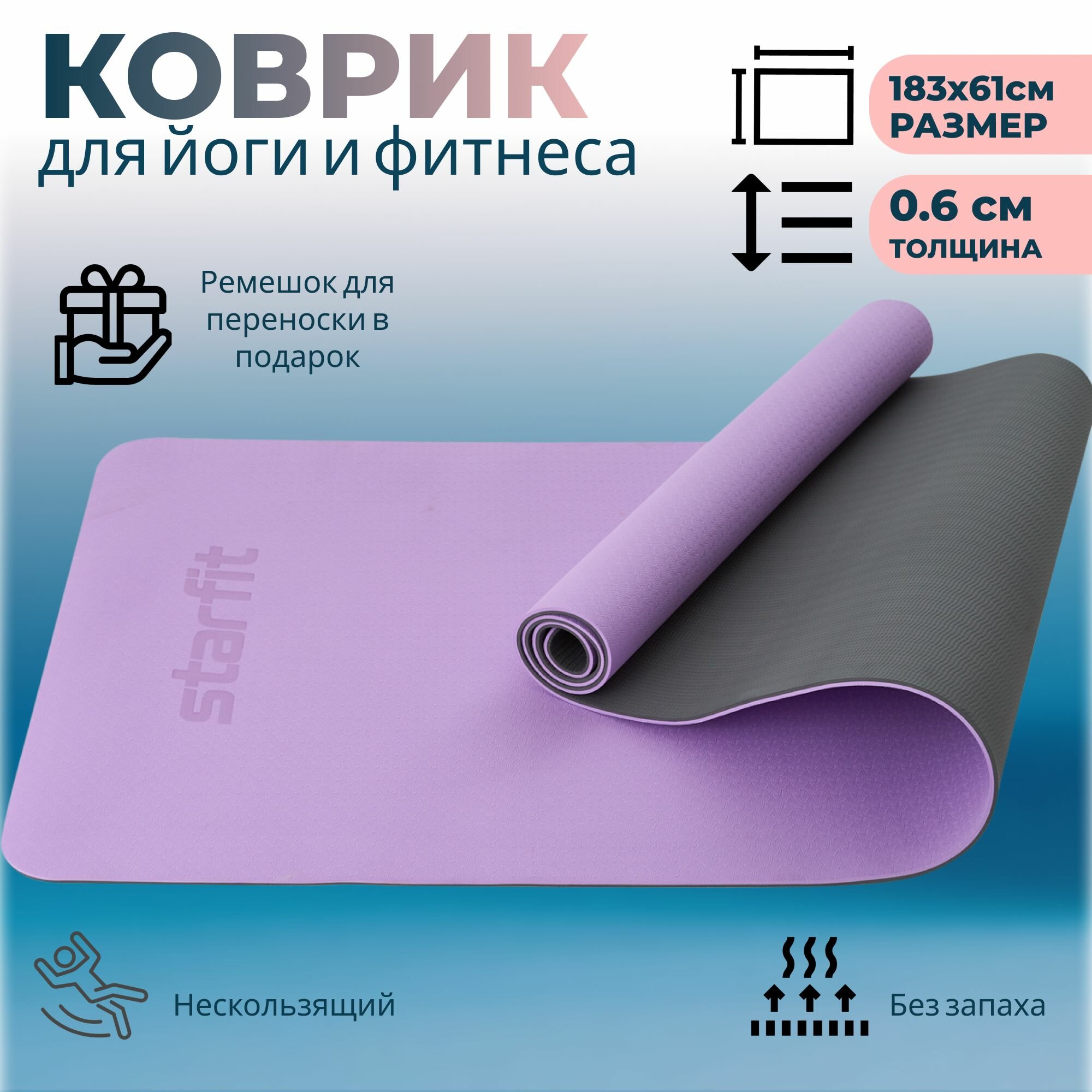 СохранитьКоврик для йоги и фитнеса STARFIT FM-201 TPE, 0,6 см, 183x61 см, фиолетовый пастель/серый интересное: