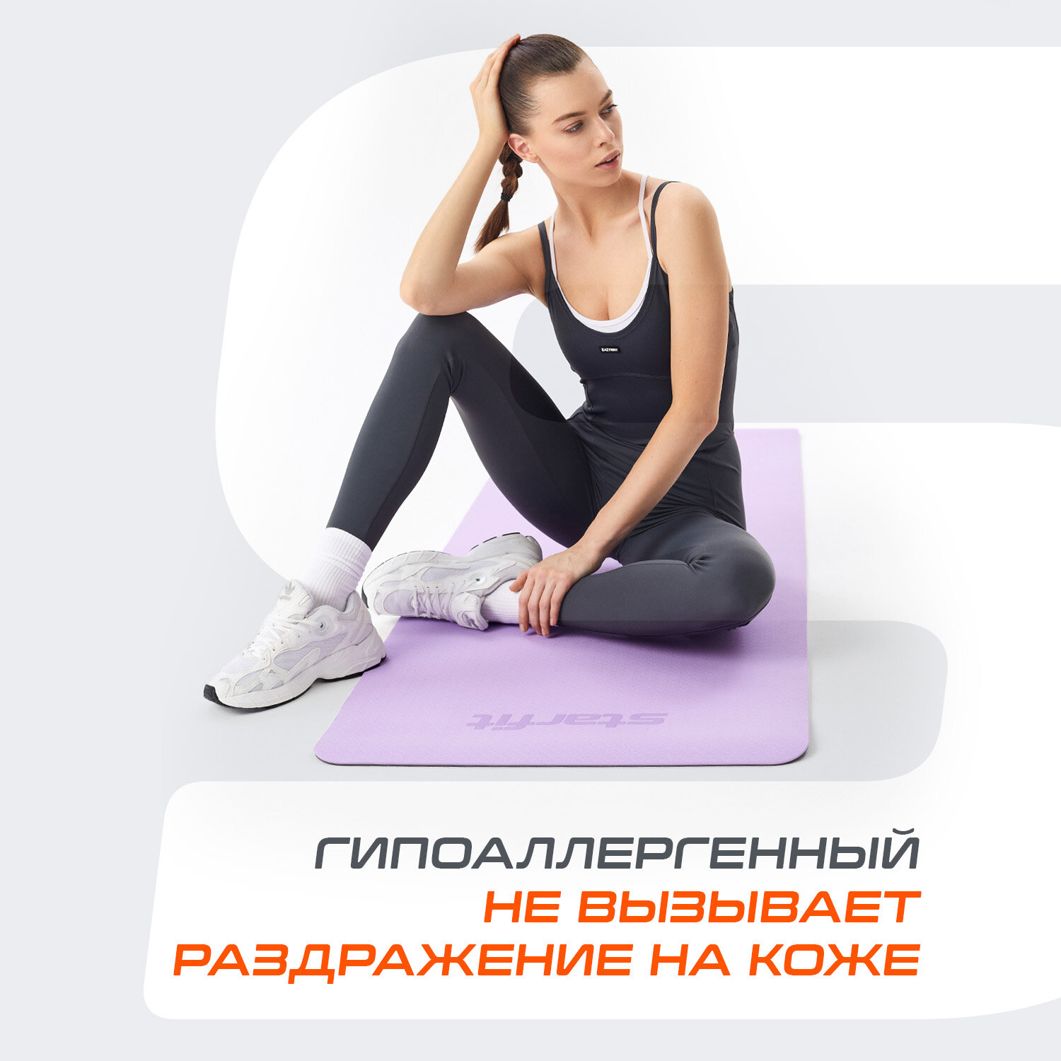 Коврик для йоги и фитнеса Starfit FM-201 Tpe, 0,6 см, 183x61 см, фиолетовый пастель/серый .