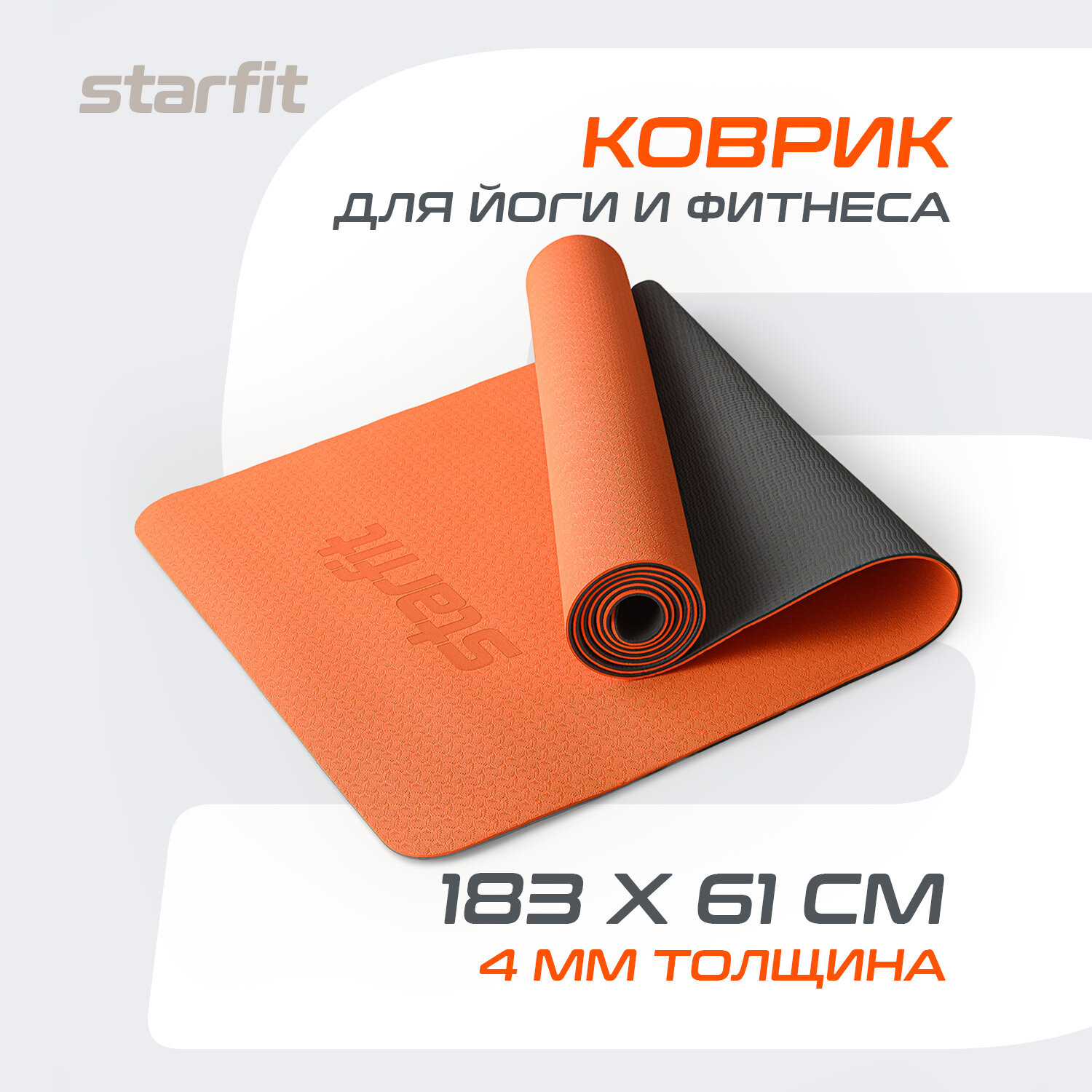 Купить Коврик для йоги и фитнеса STARFIT FM-201 TPE, 0,4 см, 183x61 см, темно-серый/оранжевый