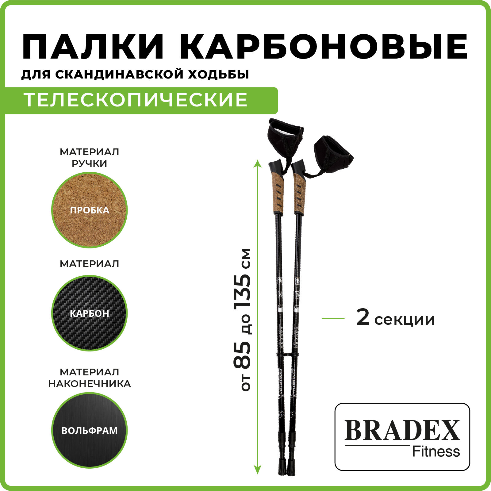 Телескопические палки Bradex карбоновые для скандинавской ходьбы «нордик стайл про», длина: от 85 до 135 см