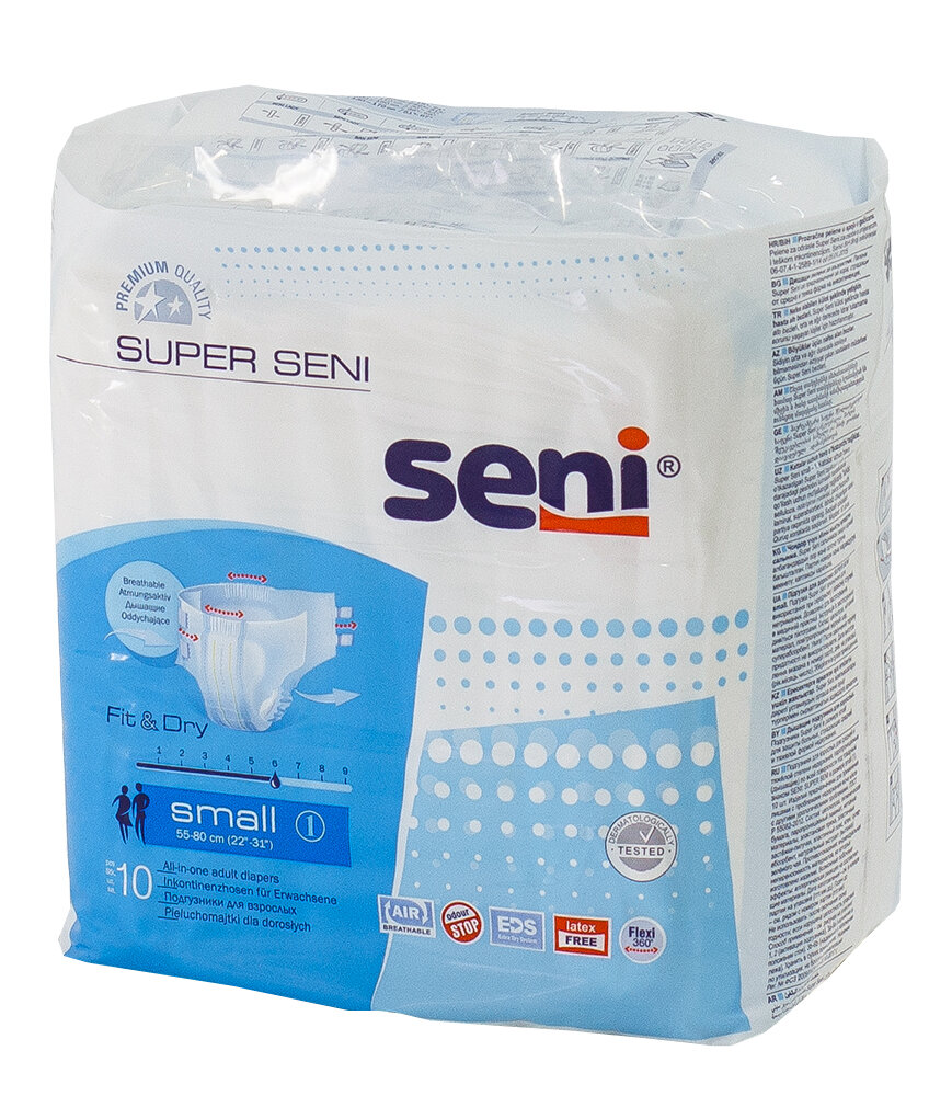 Купить Подгузники для взрослых Seni Super, S, 40 х 60 см, 55-80 см, 10 шт.