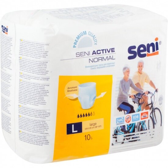 Подгузники-трусы впитывающие для взрослых SENI ACTIVE NORMAL Large (обхват 100-135 см), 10 шт.