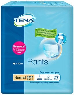 Трусы впитывающие TENA Pants Normal, L, 100-135 см, 10 шт.