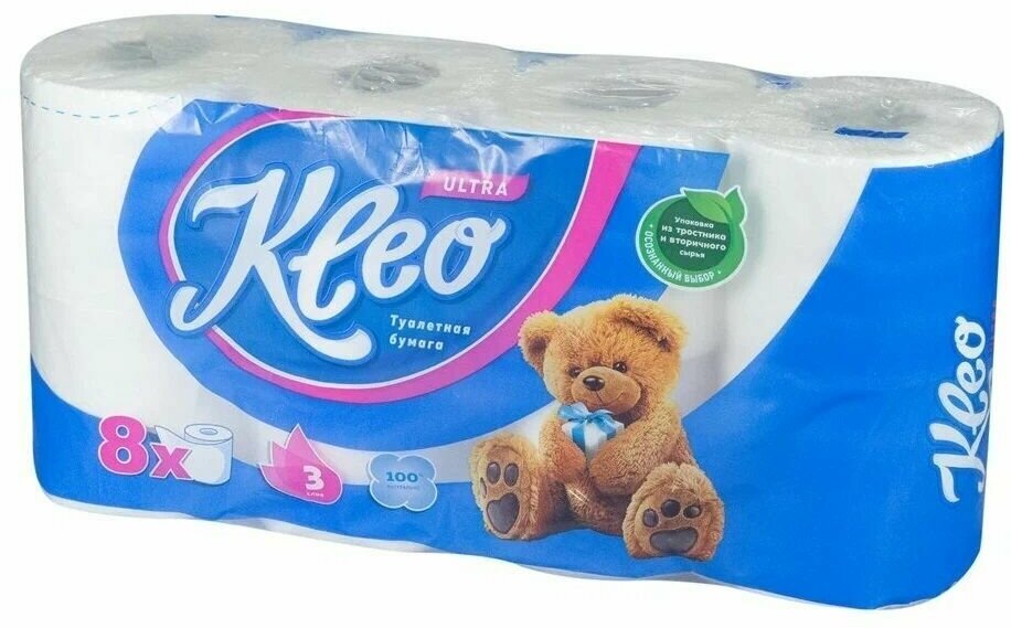 Kleo туалетная бумага 3х сл.Ultra 8рул. (белая)
