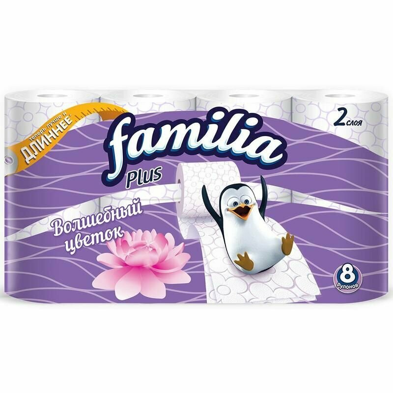 Туалетная бумага FAMILIA PLUS Волшебный цветок 2 слоя 8 рулонов