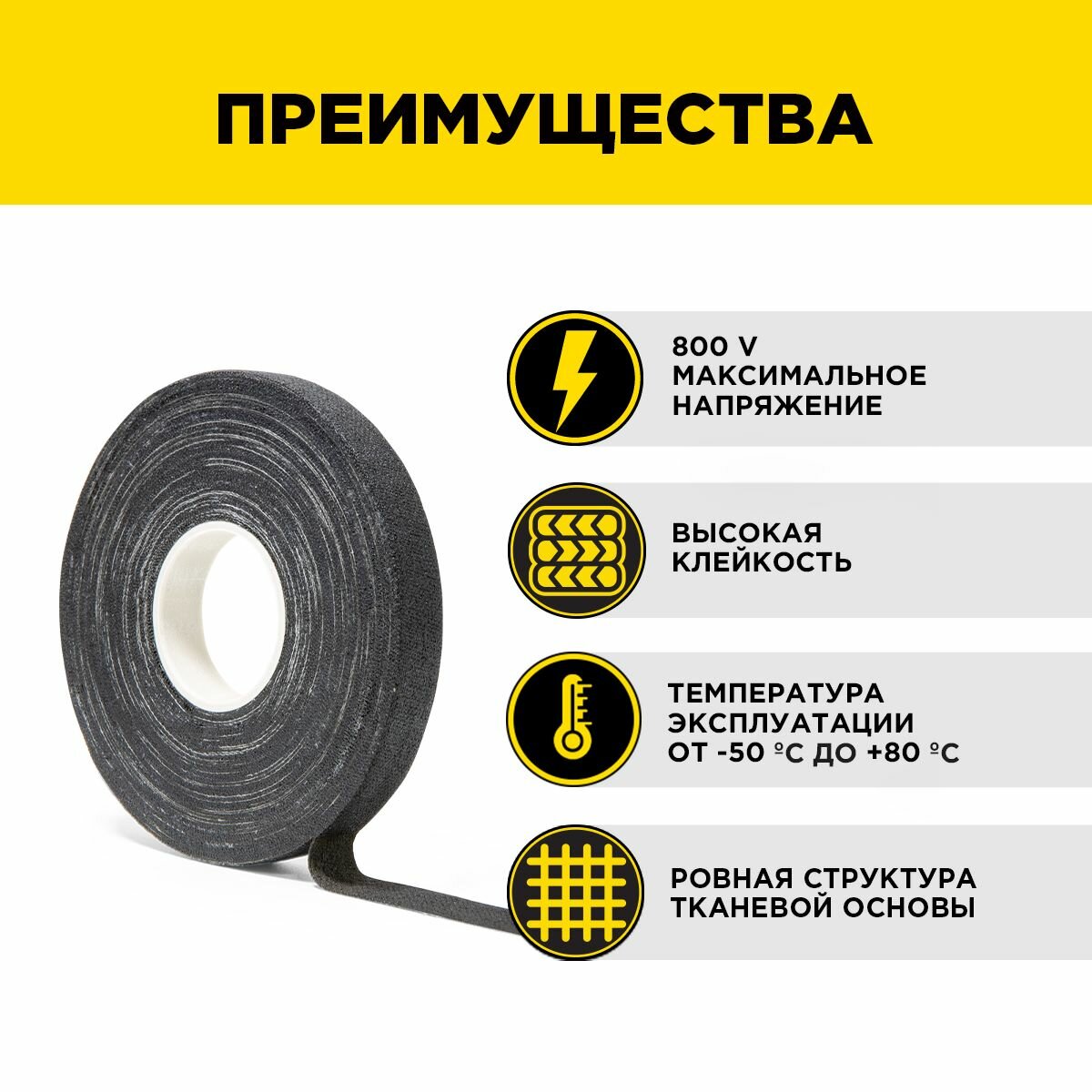 Изолента тканевая 15ммx20м черная Proffi AVIORA