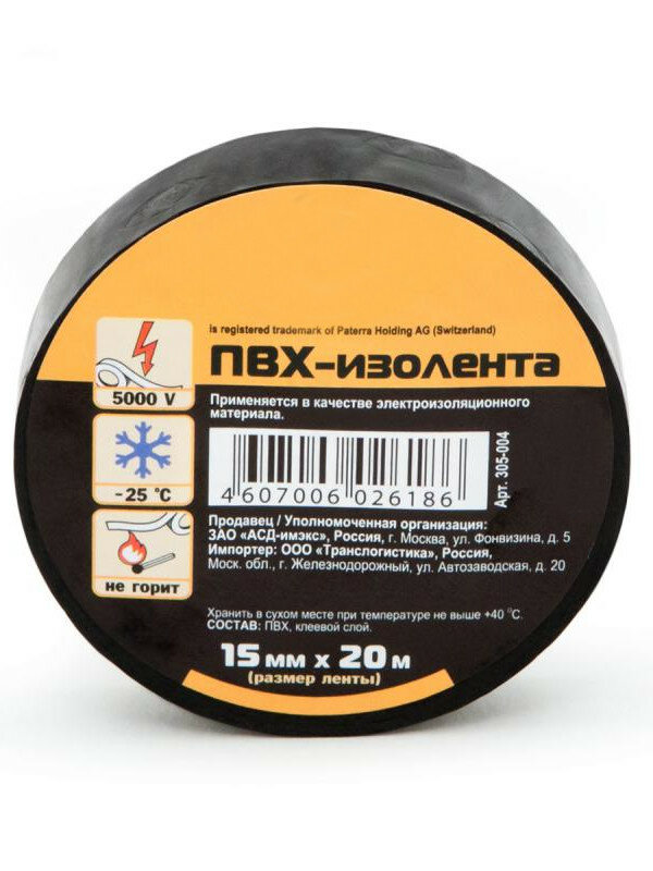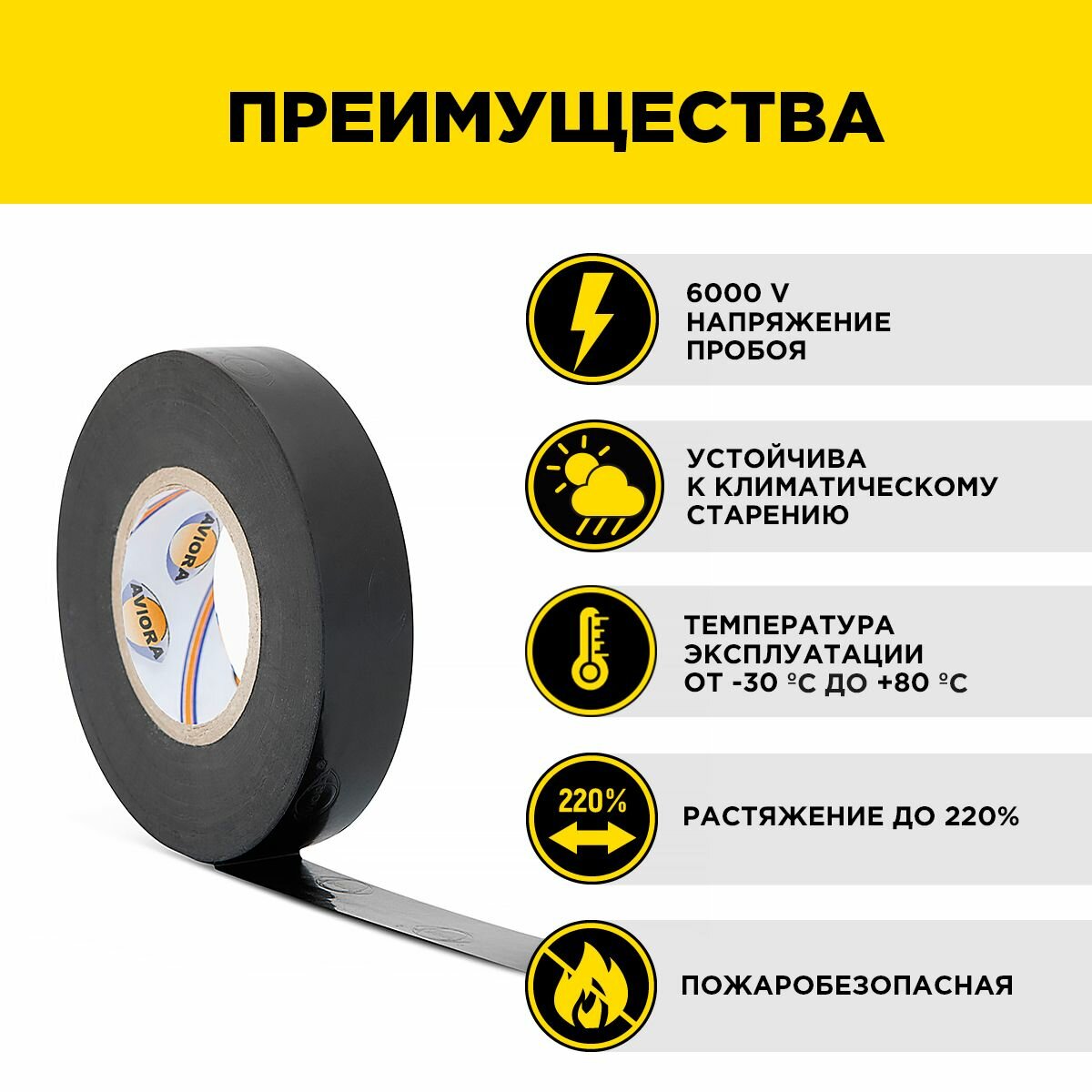 Изолента AVIORA ПВХ, 15 мм, 20 м, черная 305-004