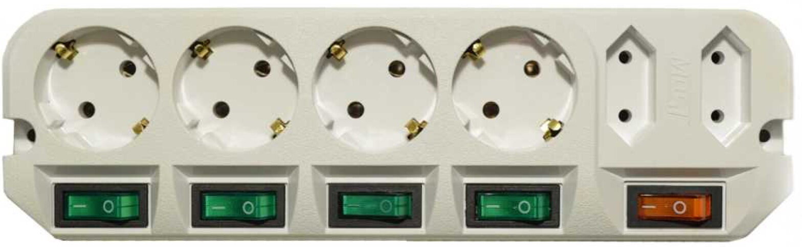 | Плюсы: | Выключатель на каждую розетку (исключение - на 2 узкие розетки 1 выключатель), есть 2 узкие розетки, качественный сетевой фильтр, прочный пластик. |