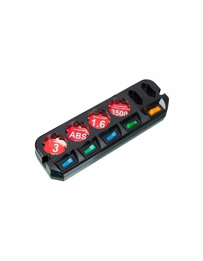Удлинитель с индивидуальными выключателями MOST A16, 6 розеток, 3500 Вт черный 5 м