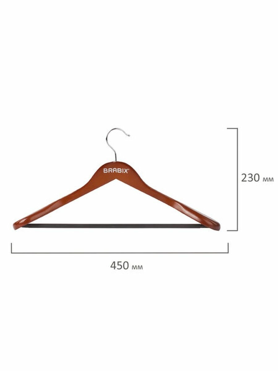Вешалка-плечики деревянная анатомическая Brabix "Люкс", антискользящая перекладина, длина 45см, темно-коричневый, 1шт. (601165)
