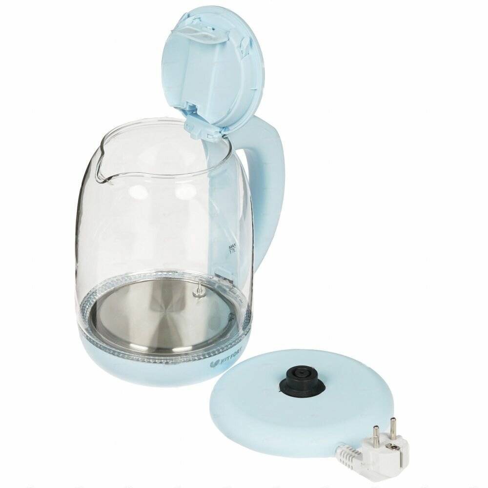 Чайник электрический KT-640-1, стекло, 1.7 л, 2200 Вт, подсветка, голубой