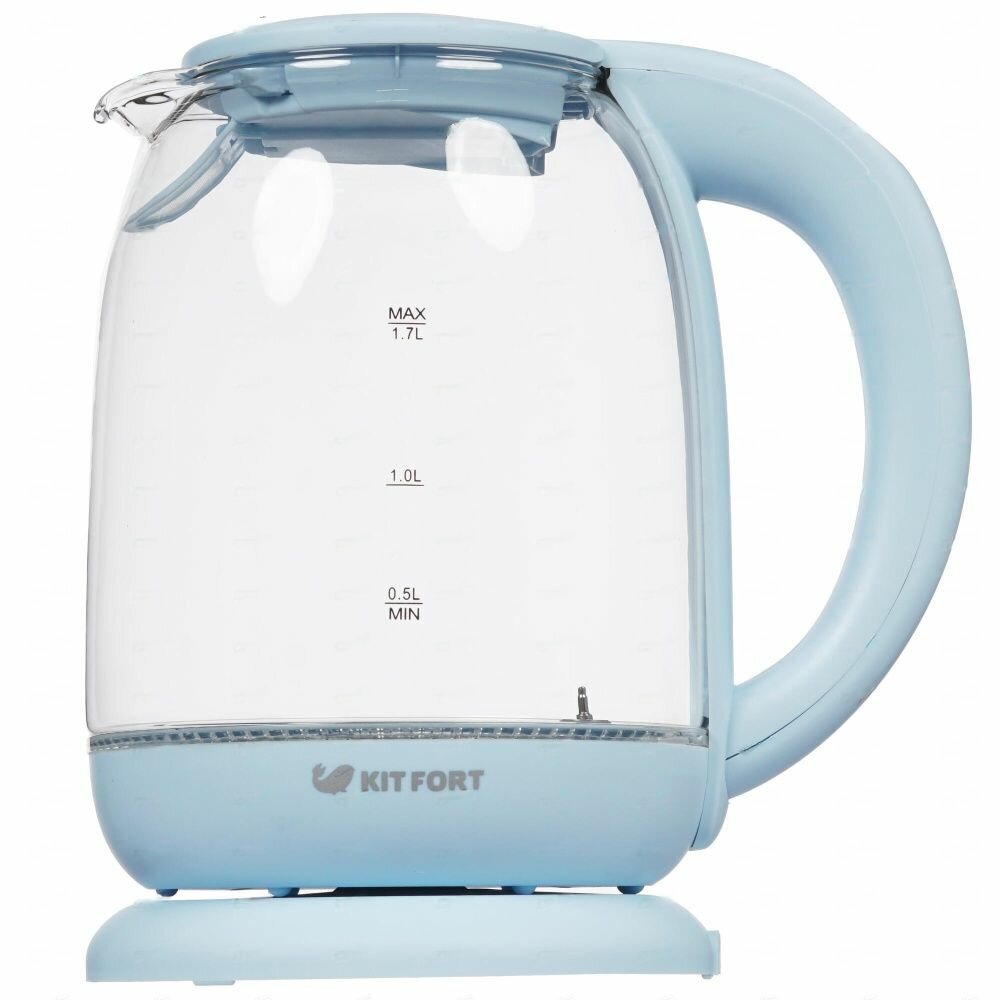 Чайник электрический Kitfort KT-640-1, пластик/стекло, 1.7 л, голубой