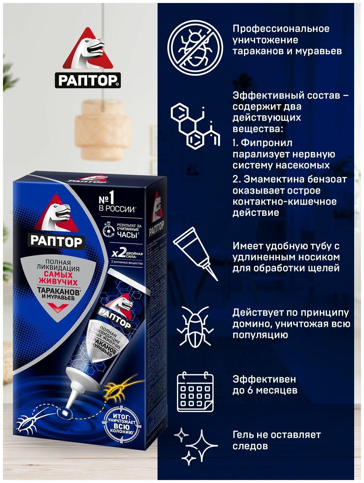 Гель от тараканов и муравьев Раптор, 75 мл - средство от тараканов и муравьев, 2 шт.