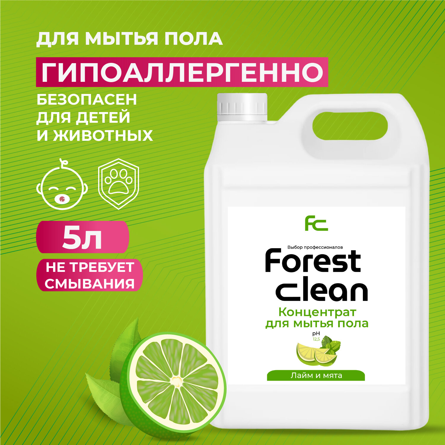 Купить Forest Clean Лайм и Мята - концентрированное средство для мытья полов, 5 литров