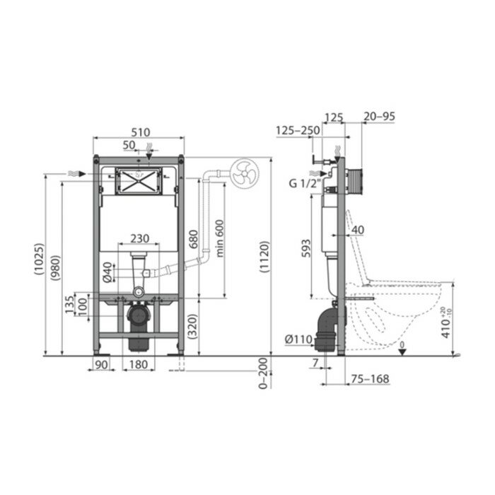 Vincea Инсталляция для унитаза Vincea VIS-601, 500x1112