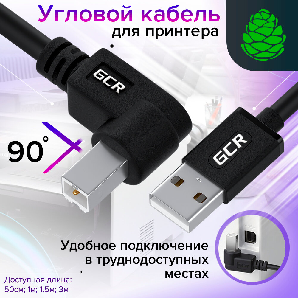 Кабель USB 2.0 AM/BM правый угол для подключения принтера (GCR-UPC3M2) черный 1.0м