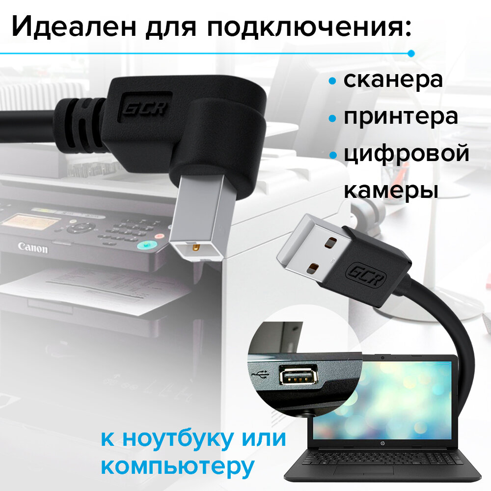 Кабель USB 2.0 AM / BM угловой правый для принтера сканера МФУ (GCR-UPC3M2) черный 0.5м
