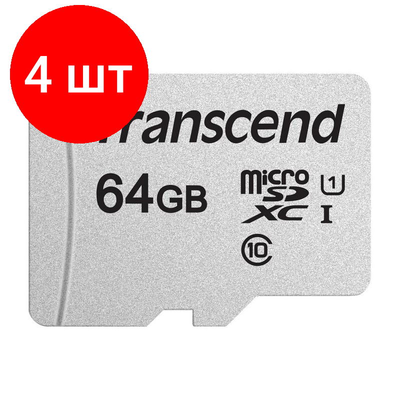 Купить Комплект 4 штук, Карта памяти Transcend 300S microSDXC 64Gb UHS-I Cl10 +ад, TS64GUSD300S-A