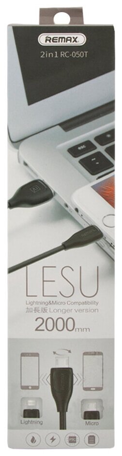 USB кабель REMAX Lesu 2 в 1 Series Cable RC-050t для Apple 8 pin/Micro USB (черный)