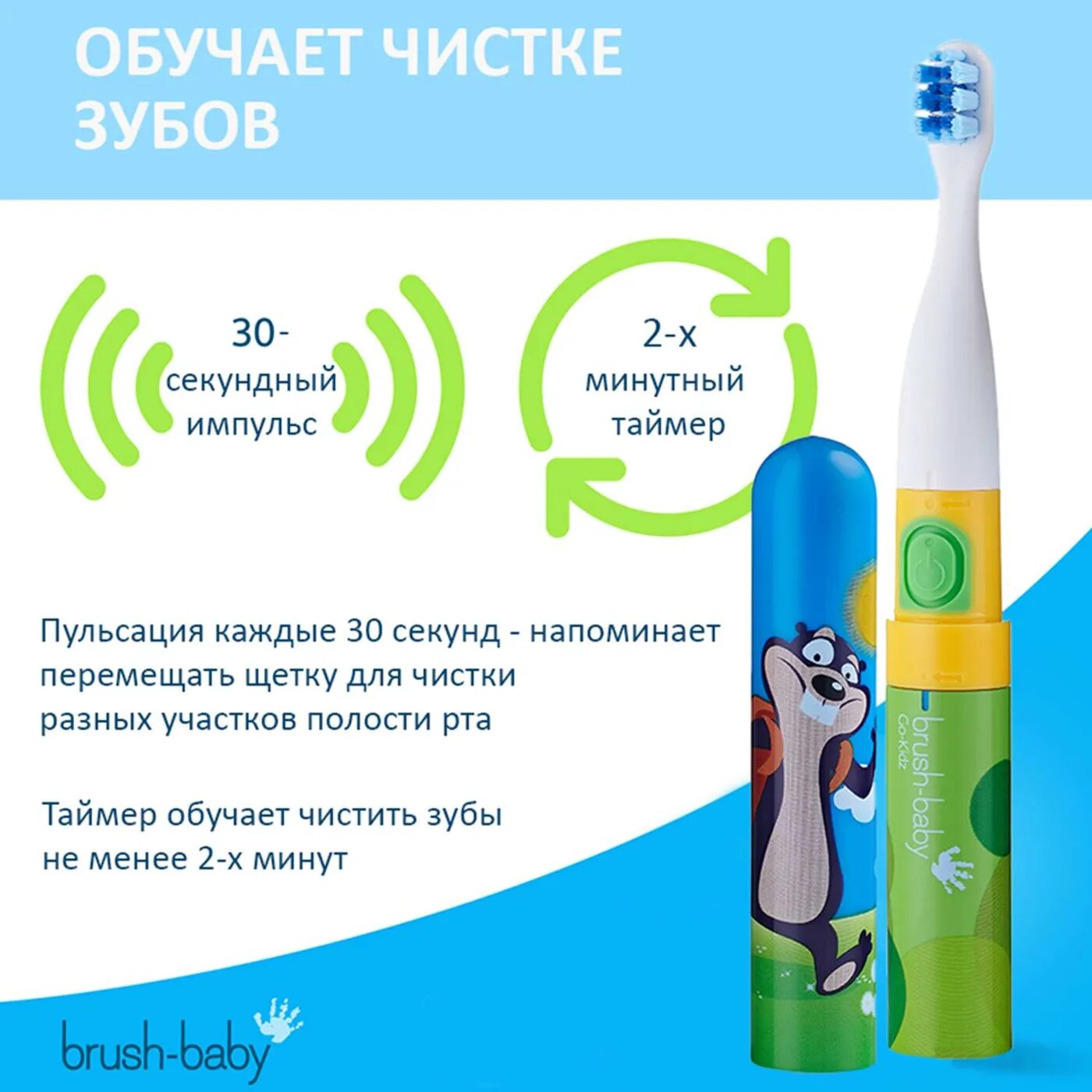 Щетка зубная электрическая для детей с 3-х лет Go-Kidz Brush-Baby/Браш-Бэби (BRB123)