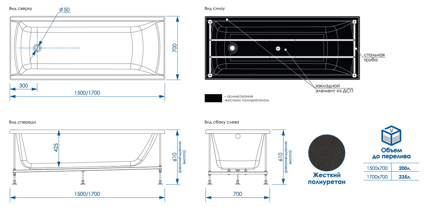 Акриловая ванна "стандарт" 1500*700мм на каркасе интересное: