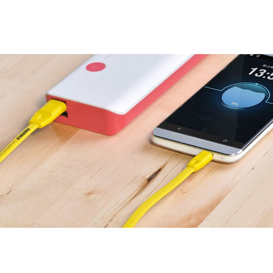 USB кабель Remax Full Speed Series Cable RC-001m для смартфона MicroUSB плоский пластиковые разьемы, 1 метр, желтый