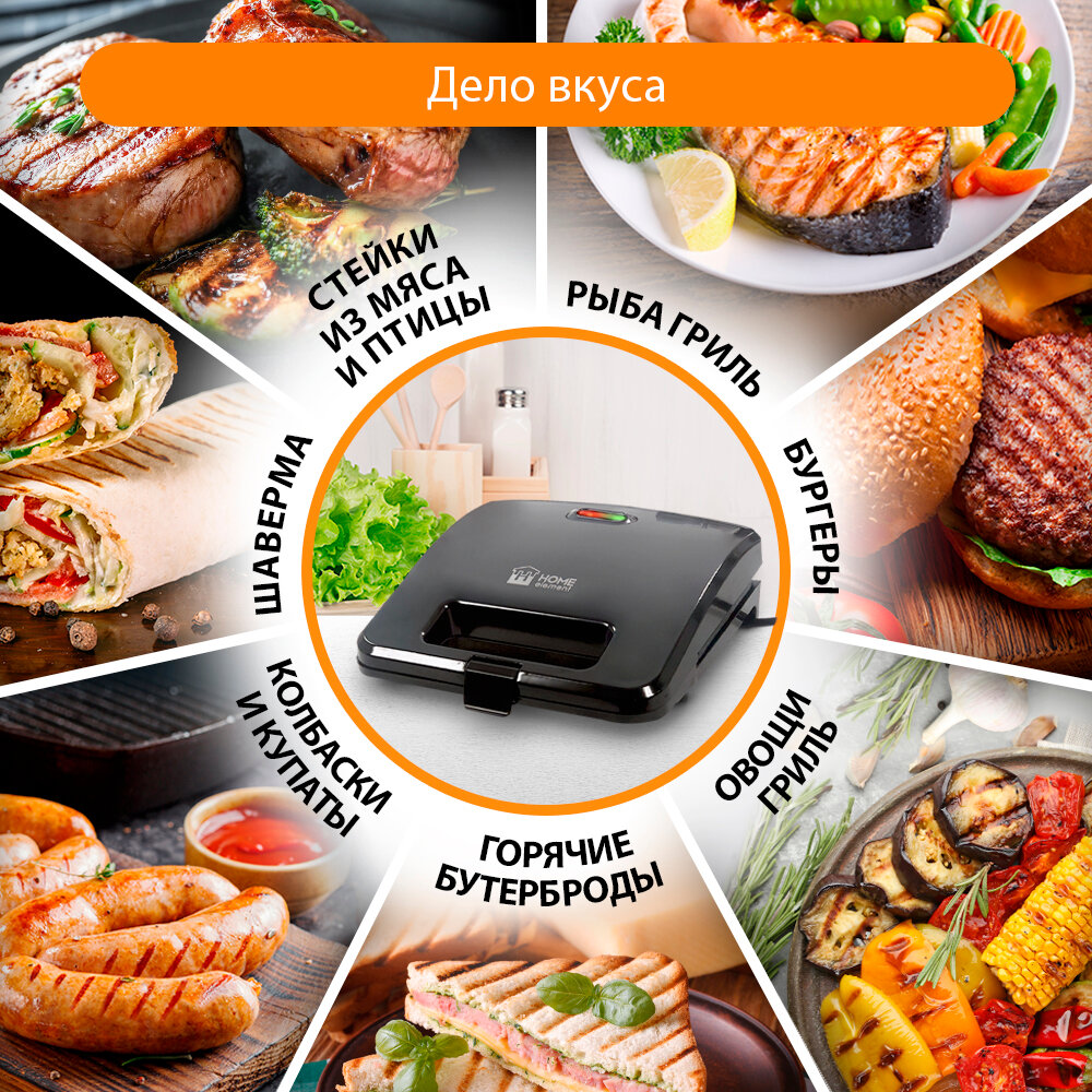 HOME ELEMENT HE-SM551 Bl бутербродница, электрогриль-сэндвичница интересное: