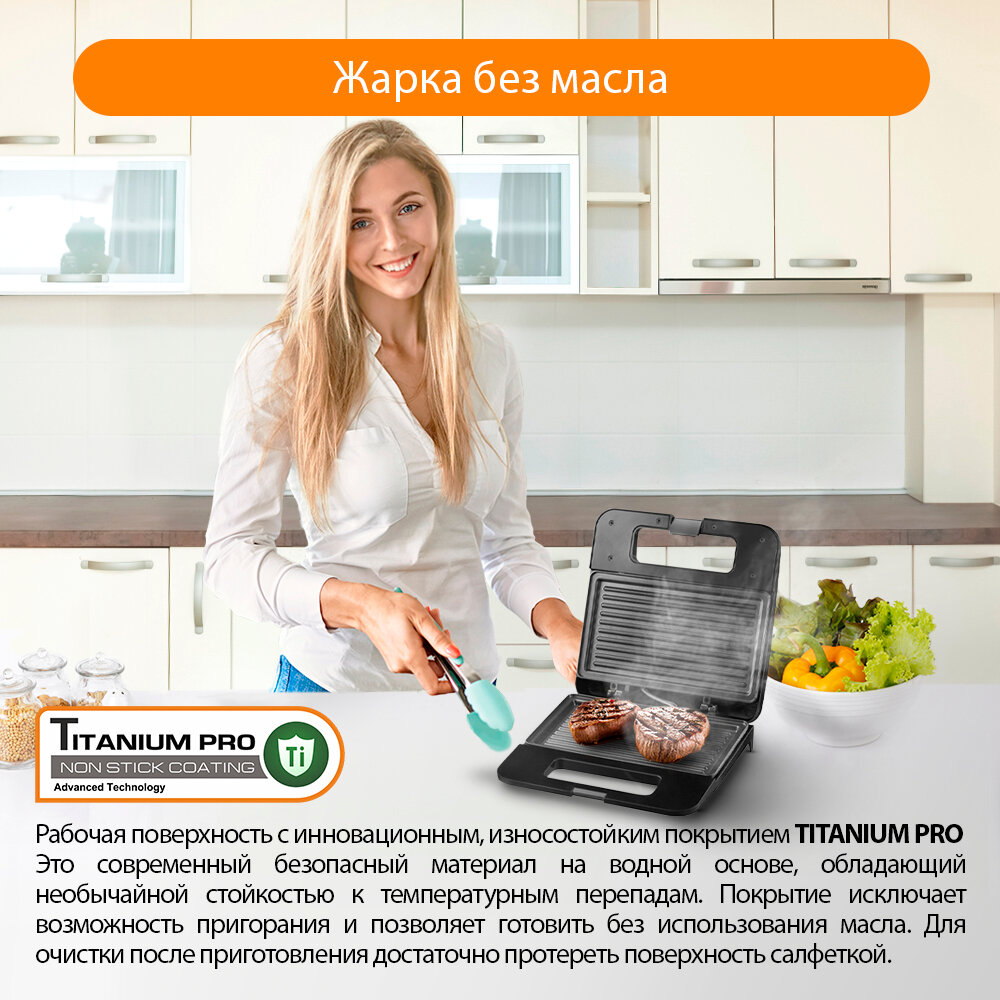 По факту это не гриль, а сэндвичница, о чем написано на коробке. Первая пришла с поцарапанным покрытием, вернула, заказала новую. Вчера пожарила корейку на кости, сразу откуда-то выпал винтик, пожарила вместе с корейкой. На выходе блюдо получилось вкусным и сочным (за исключением винтика, его есть не стала, прикрутила обратно). Моется легко. Не уверена, что прослужит долго, как гриль. Может, как сэндвичница только, но мне хочется мяска. В принципе, качество адекватно цене.