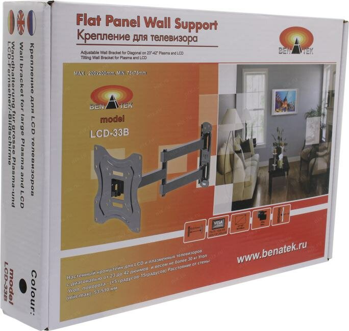 Ниже Вы можете прочитать отзывы на Кронштейн для телевизора Benatek Lcd-33b черный 24"-43" макс.30 кг наклон наклон и поворот поворот, ознакомится с подробными характеристиками, посмотреть интересные обзоры и фотографии на Кронштейн для телевизора Benatek Lcd-33b черный 24"-43" макс.30 кг наклон наклон и поворот поворот.