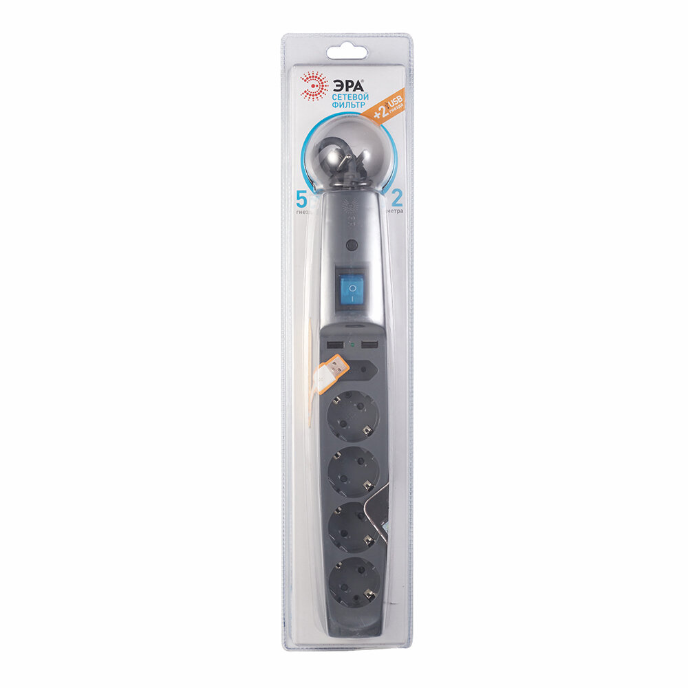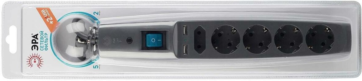 Сетевой фильтр c USB ЭРА-SFU-5es-2m-B