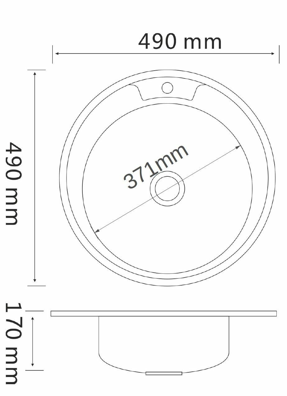 Купить Мойка для кухни врезная 490 мм, круглая, нержавейка 0,8мм
