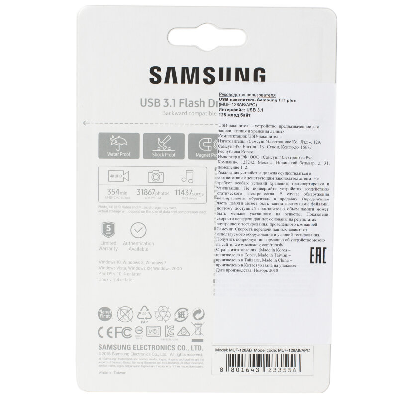 СохранитьUSB флешка 128Gb Samsung Fit plus USB 3.1 Gen 1 (USB 3.0) интересное: