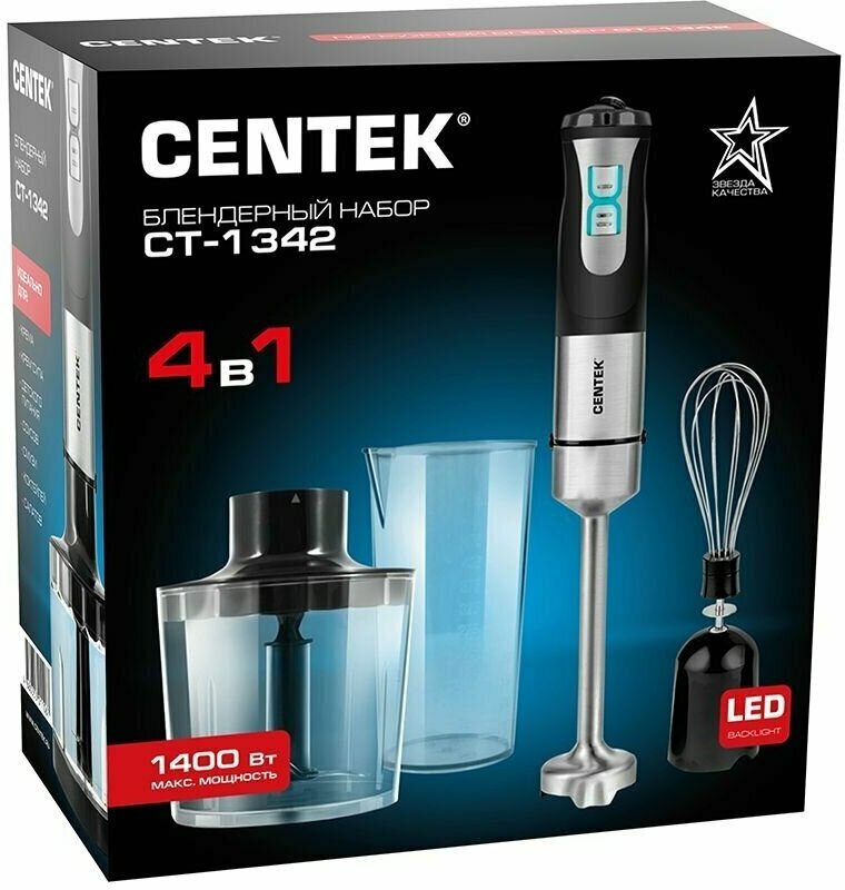 Погружной блендер CENTEK СТ-1342, черный/серебристый