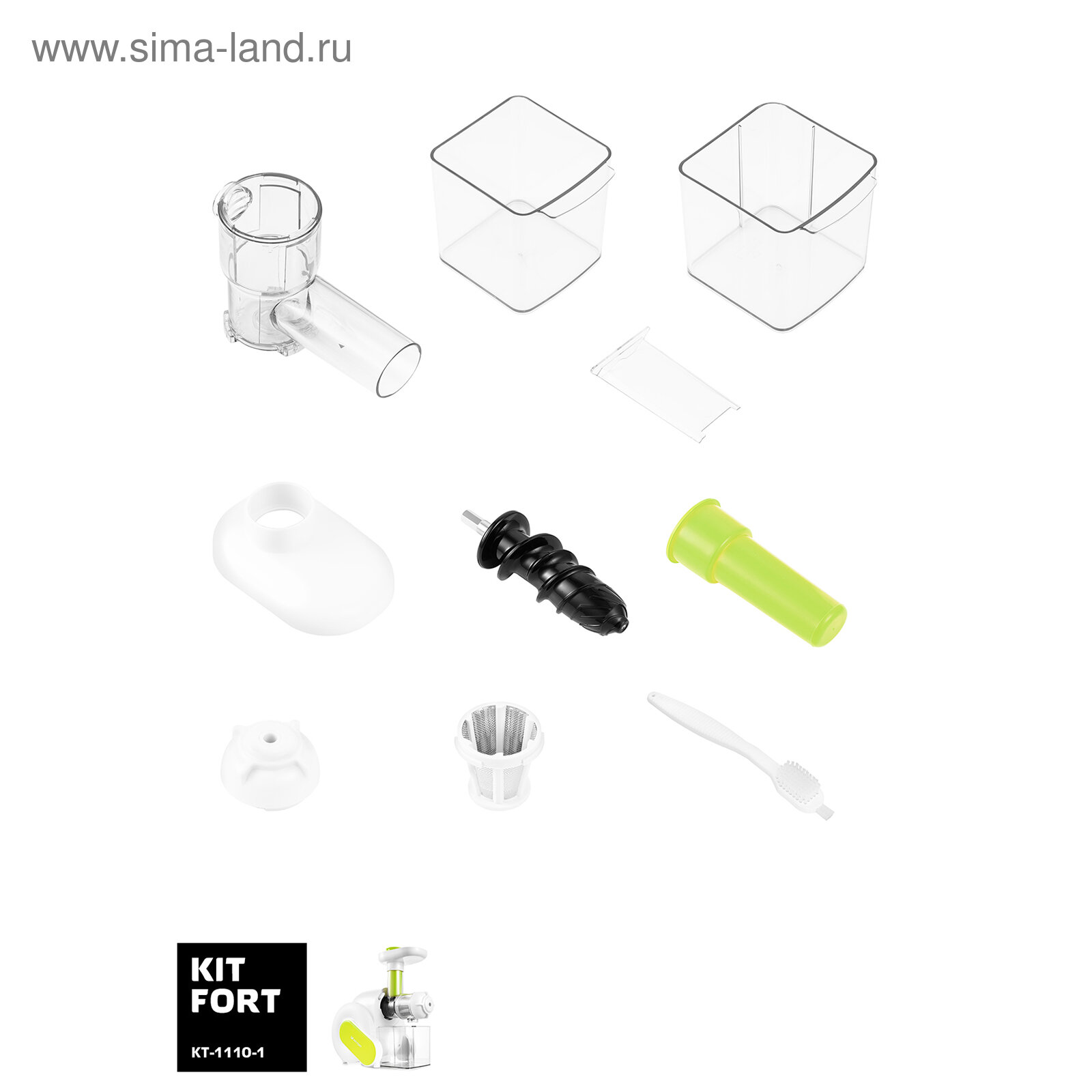 Соковыжималка KITFORT KT-1110-1, white/green, 150 Вт, загрузочный лоток, щеточка для чистки